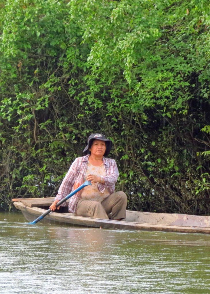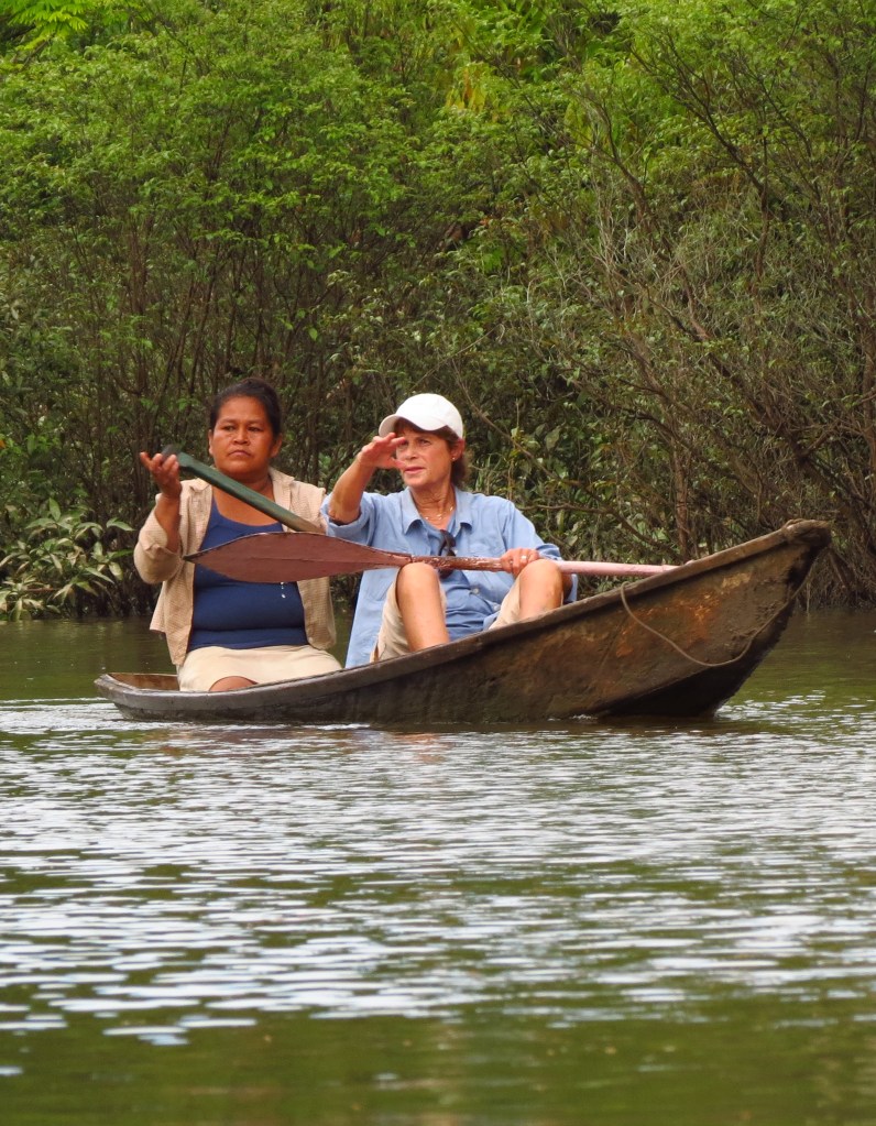 When I was in the Amazon of Peru, my tour group, OAT’s Grand Circle, took a side tour with a business run by Amazonian women. (Grand Circle Foundation supports women-owned businesses worldwide.) We paddled in canoes on San Regis Creek. Our guides were wonderful and it was a nice, relaxing afternoon.