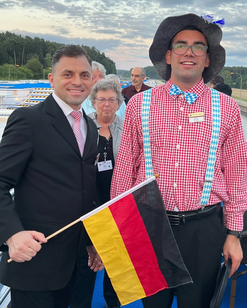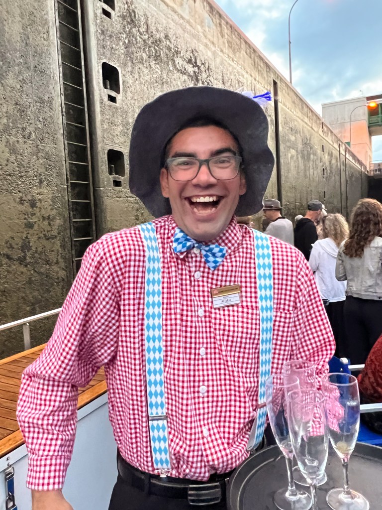 Our visit to Kelheim was very brief. This quaint Bavarian village was very small with a city center of only 4 or 5 streets. We walked to the Liberation Hall on top of the hill above the village. With rain coming down most of the time, there were very few opportunities for smiles.