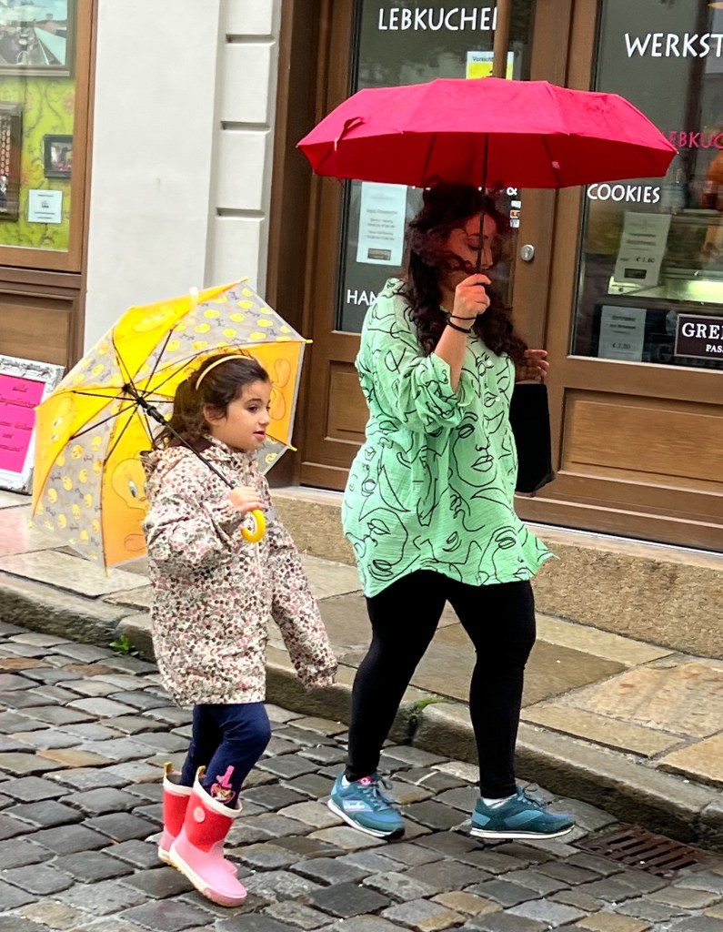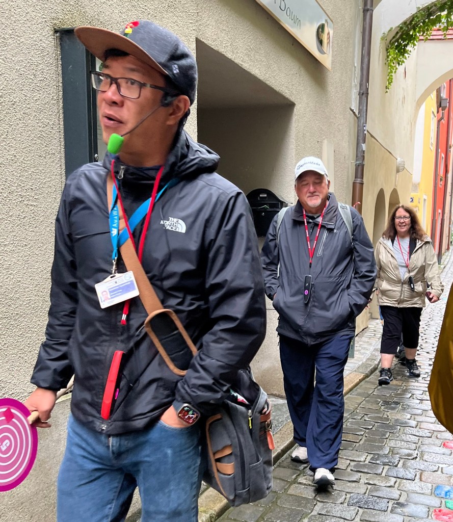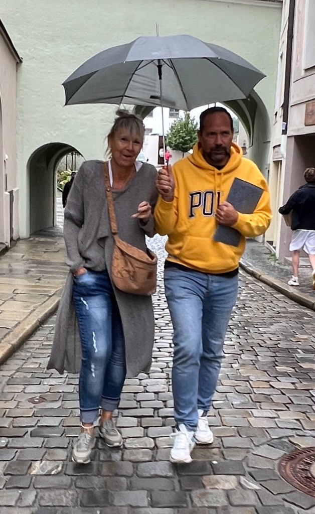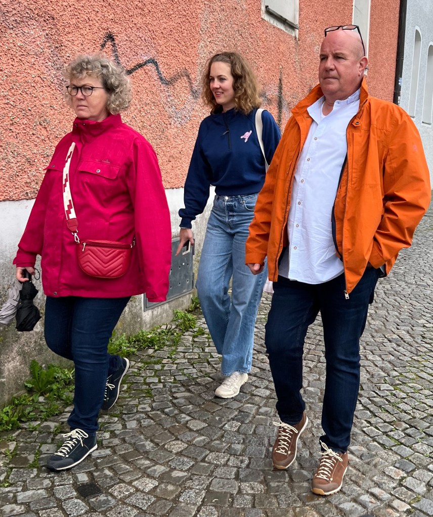 Today we explored Passau. The colorful assortment of pastel-colored buildings, cobblestone streets, and ornate sculptures made it an interesting place to people watch.