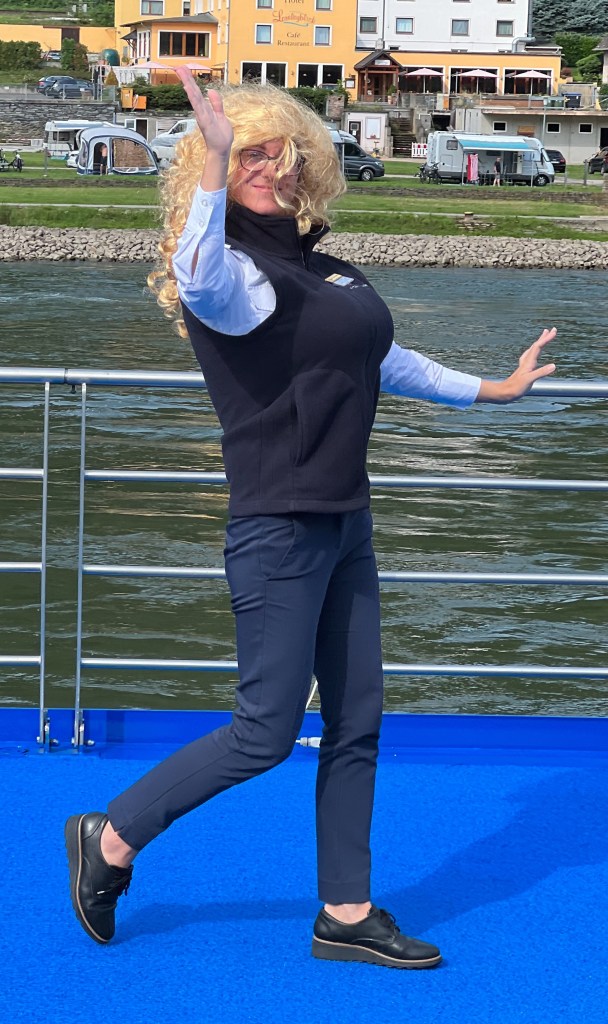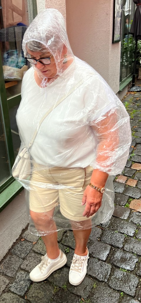 Today we cruised through the Rhine River’s Castle Corridor. It was castles galore. In the afternoon we arrived in Koblenz, a 9 BC town at the point where the Rhine and Mosel meet. As we walked through the town in the heavy rain, it was hard to capture faces. But I was able to get a few smiles in town and on the River Aria.
