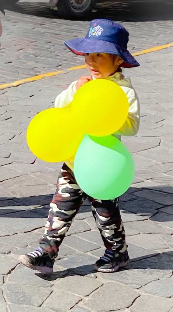 Cusco, a city in the Peruvian Andes, was once the capital of the Inca empire. It is now known for its archaeological remains and Spanish colonial architecture. Women and their children come down from the mountain villages in their colorful costumes to sell their goods on the streets of Cusco. I was able to get some very interesting shots of both locals and tourists alike.