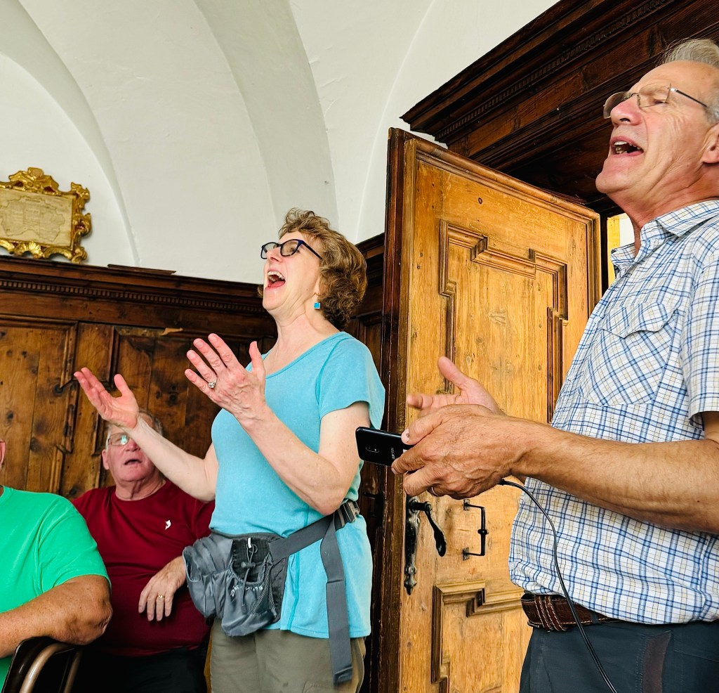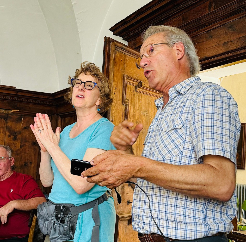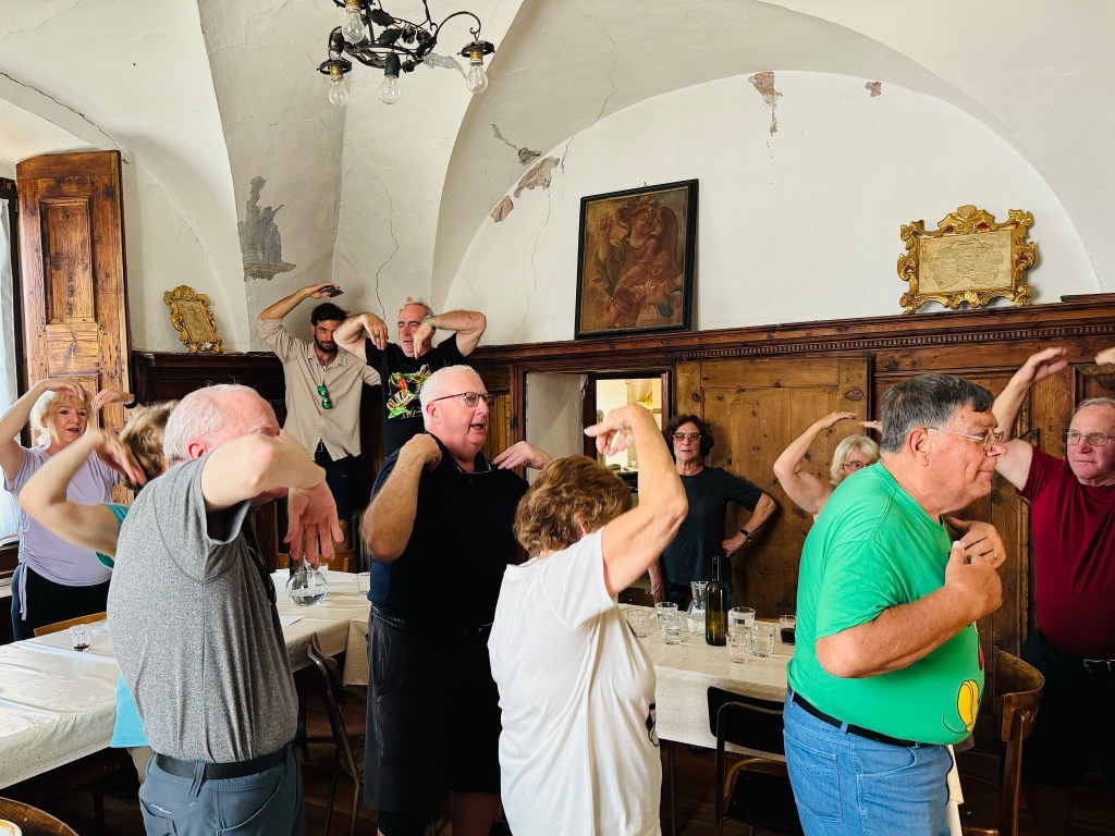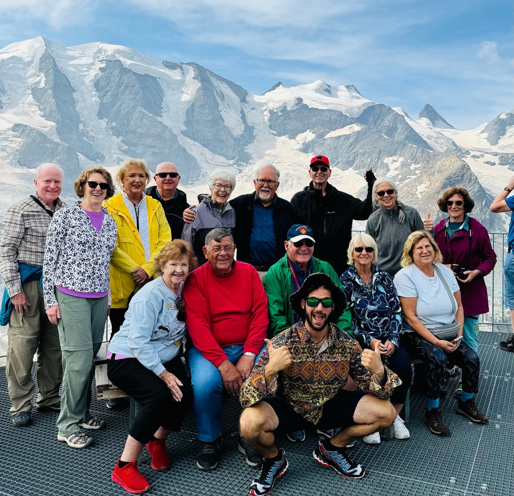 On our first full day in Tirano we experienced O.A.T.’s “A Day in the Life” in a small village up in the hills above the town. A wonderful time was had by everyone in our group. The second day we took the Red Train to the Diavolezza station in Switzerland, then a cable car ride up to a point high on the mountain where we had panoramic views of the snow-cloaked mountains and glaciers. It was very comfortable and not too crowded. We finished off the night with A Home Hosted Dinner with Luca. His hospitality was superb and his home cooked meal was delicious. All five of us had a wonderful time.