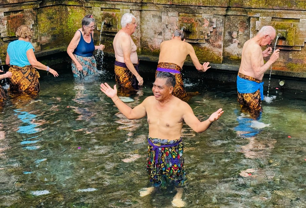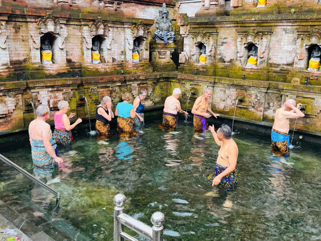 Along the way to Sanur we visited the salt miners in Kusamba and took part in a purification ceremony at Sudamala Temple. Our visit to the ‘Uluwatu Cliffside Temple’ was awesome with all of the monkeys.