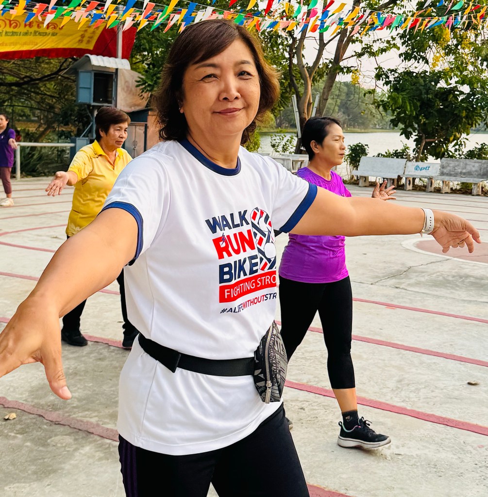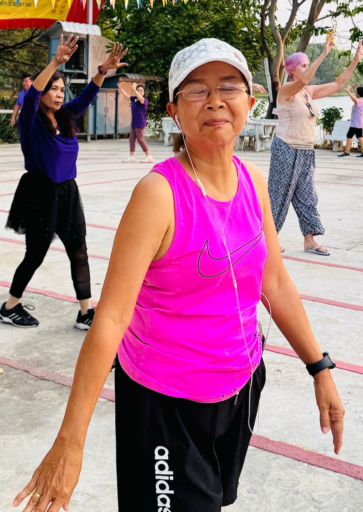 In Nakhon Sawan we visited the Paradise Park. Locals use this park for walking, running, and cycling around the lake. Our group joined a line dancing class and had a very good time.