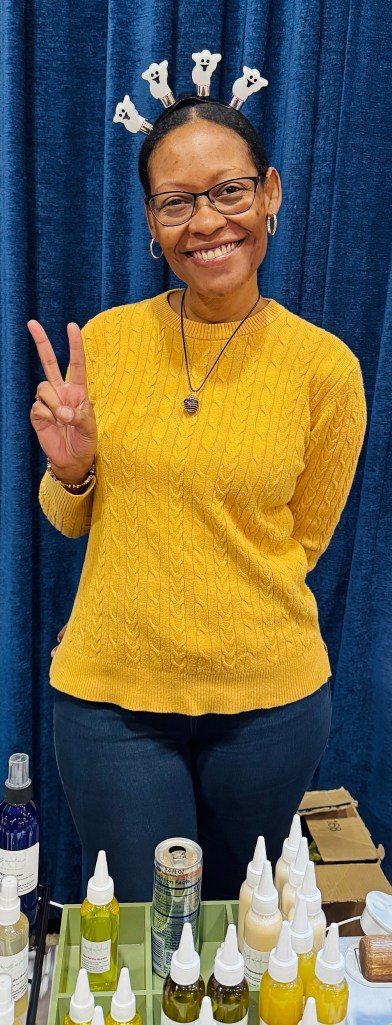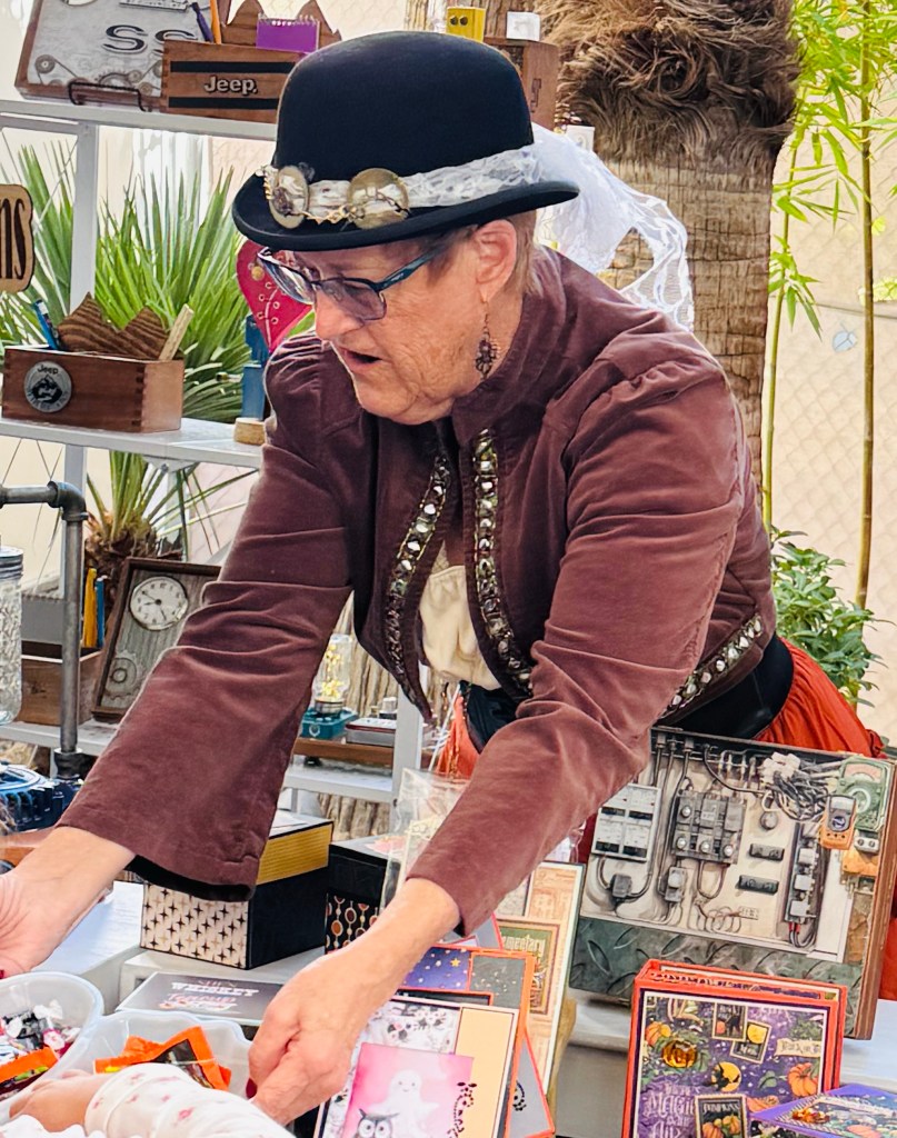 We saw lots of unusual handmade crafts. The highlight for me was all of the vendors in Halloween costumes with great smiles.