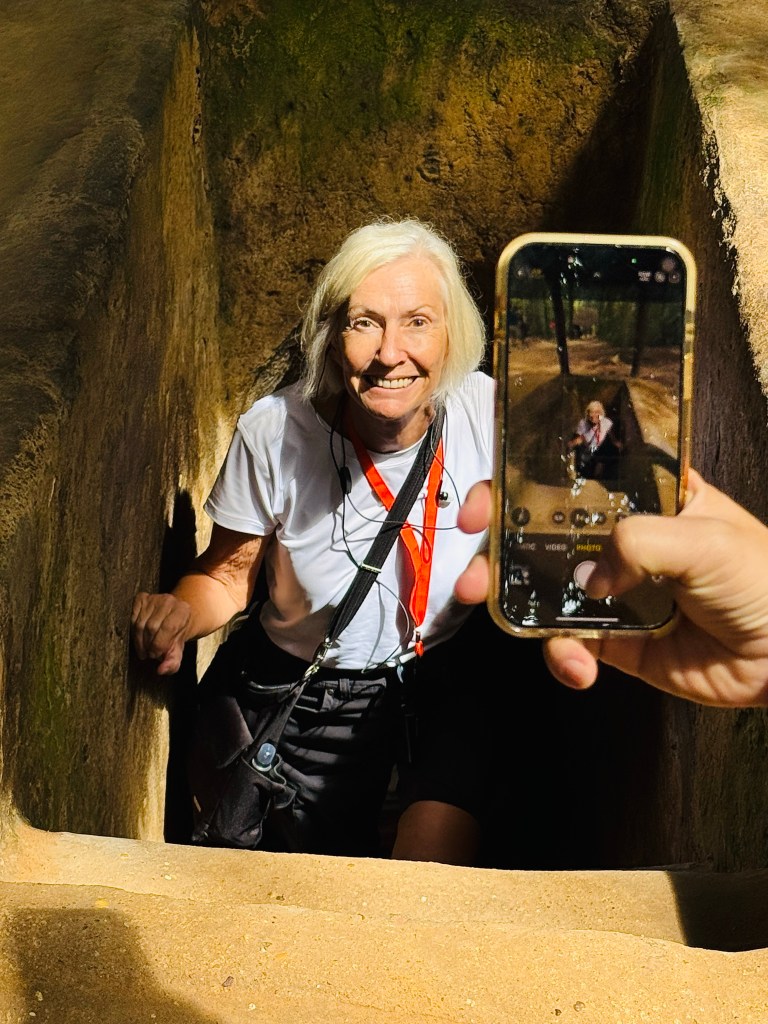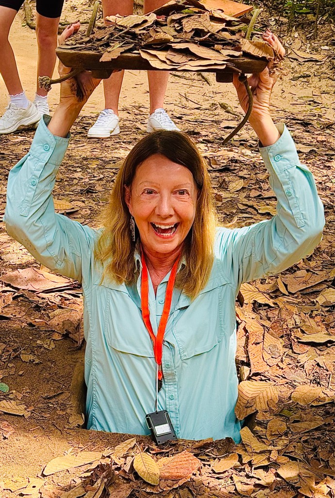 Saigon was the last stop on OAT’s Ancient Kingdoms tour. We cruised up the Mekong river and had a Saigon street food adventure tour, which included a wild ride around the city on scooters. On our last day we visited the Cu Chi tunnels. The Saigon streets were packed with scooters, locals, and tourists. This was the busiest city on our tour with many opportunities for faces and smiles.