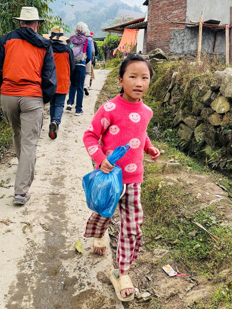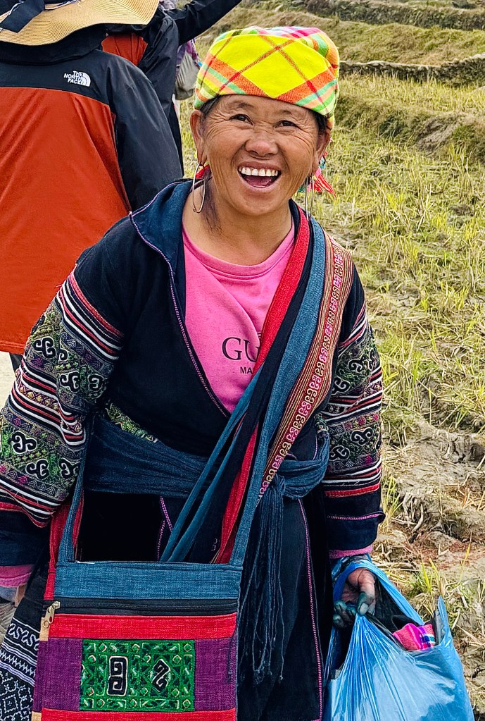 We visited four hill tribes on our stay in Sapa. The Red Dao, Red Dzao, Black Hmong, and the Dzay tribes. All had beautiful smiles and were wearing bright colors significant to their tribes culture. They all welcomed us to take pictures of them wearing their tribal dress. Sapa was a place for faces and smiles of an unusual kind. Very nice.